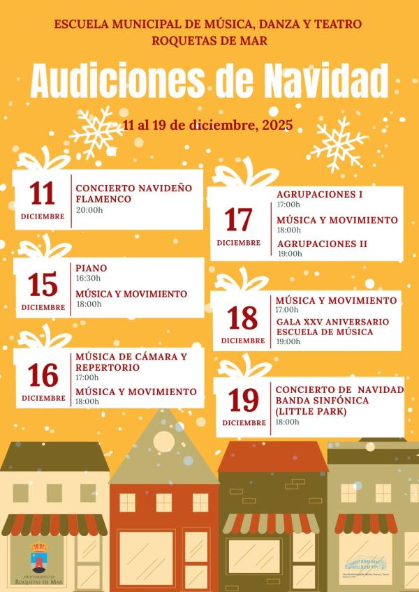 del 11 al 19 de diciembre, todas las audiciones de los alumnos y alumnas de la Escuela de Música